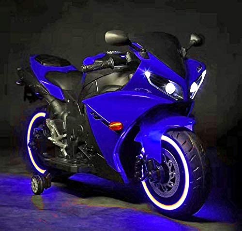- Product details: Kids ride on bike operated with 550 single motor and Hand throttle acceleration with attractive features like LED headlights, attractive wheel lights, balance/support wheel, brake, push button start, digital looking display, forward/backward drive [reverse drive], bike speed 5 km/hr, smooth riding, music penal with USB card port, adjustable volume,Battery cell required horn etc.
